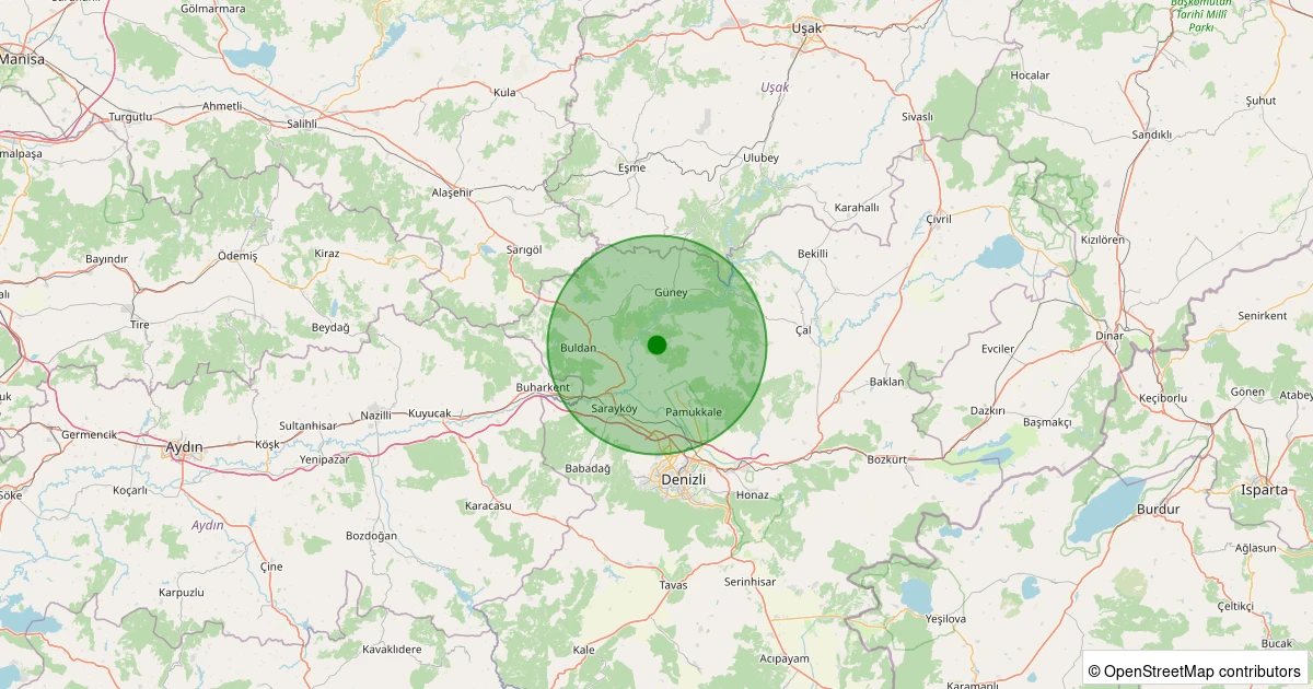 Son 7 gün içinde Pamukkale - Belenardıç Köyü noktasından 100 km yarıçap içerisinde meydana gelen diğer depremler: