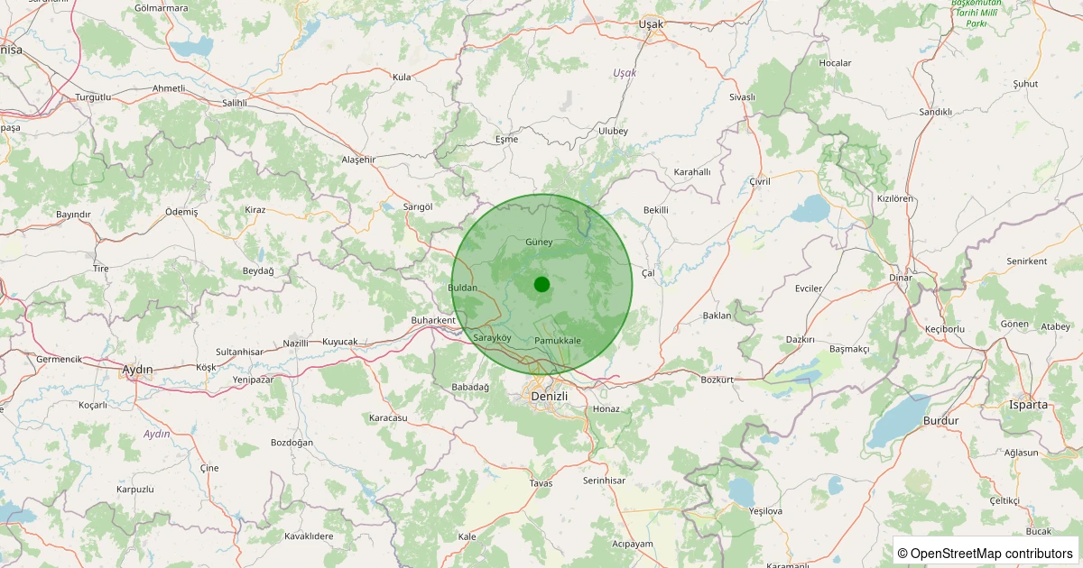 Son 7 gün içinde Pamukkale - Belenardıç Köyü noktasından 100 km yarıçap içerisinde meydana gelen diğer depremler: