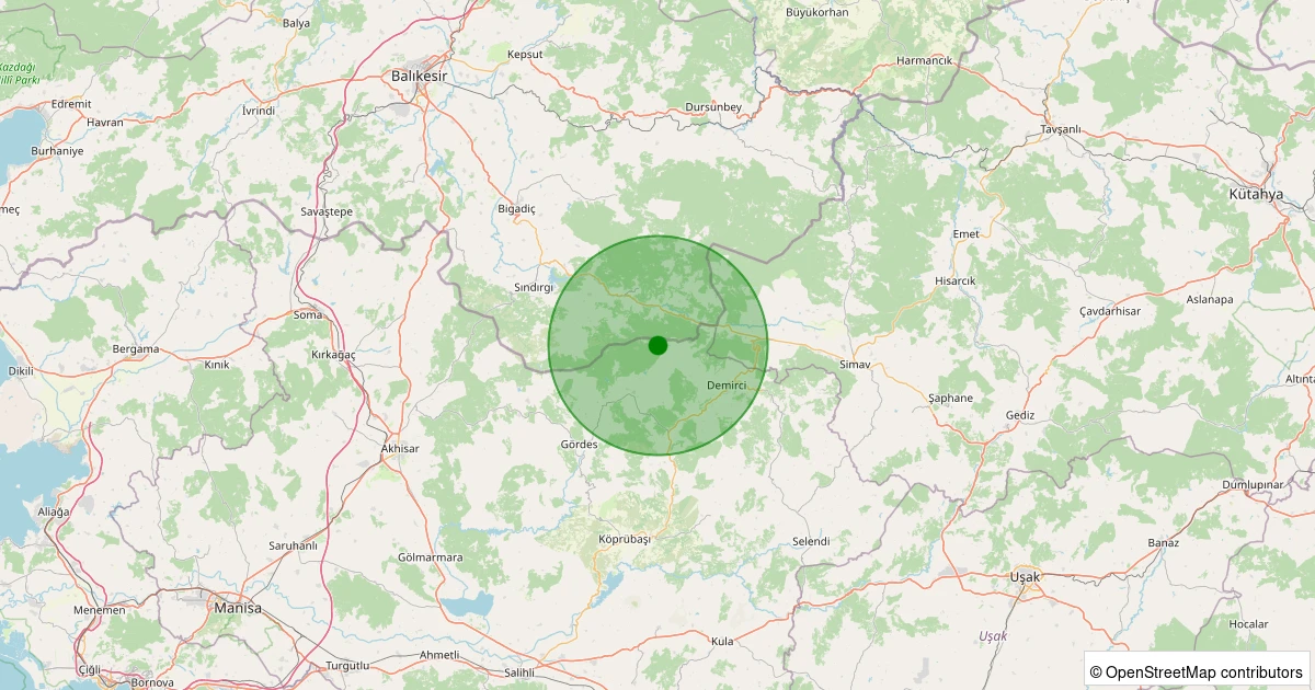 Son 7 gün içinde Demirci noktasından 100 km yarıçap içerisinde meydana gelen diğer depremler: