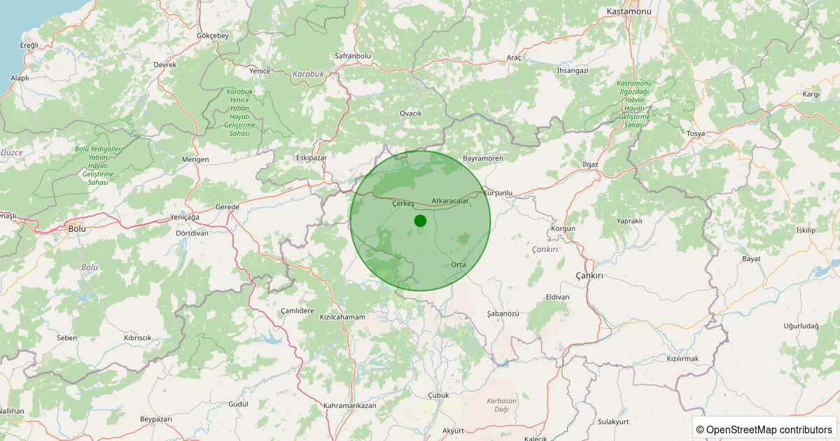 Son 7 gün içinde Çerkeş - Saçak/Yalıözü noktasından 100 km yarıçap içerisinde meydana gelen diğer depremler: