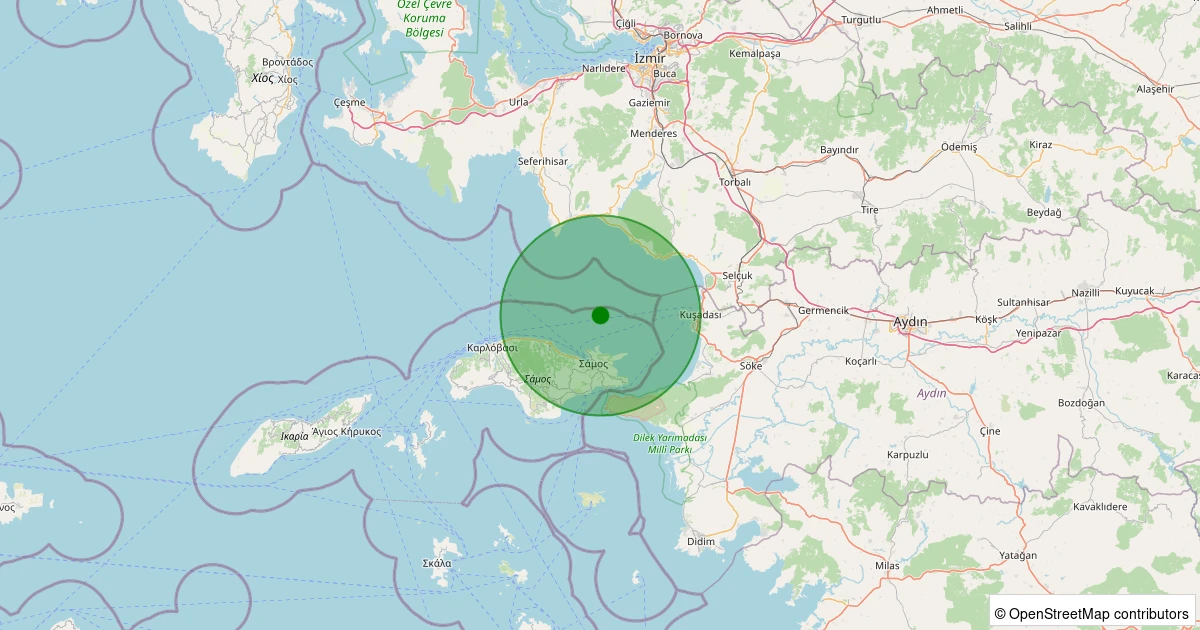 Son 7 gün içinde Ege Denizi - Kuşadası Körfezi - [19.92 km] Menderes (İzmir) noktasından 100 km yarıçap içerisinde meydana gelen diğer depremler: