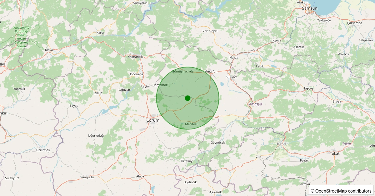 Son bir hafta içerisinde Çorum şehri Merkez - Karahisar Köyü noktasından 100 km yarıçap içerisinde toplamda 25 deprem kaydedilmiştir. Bu depremlerden en büyüğü 2.2 büyüklüğünde ve en sığ odaklısı 5.00 kilometre derinlikte gerçekleşmiştir.