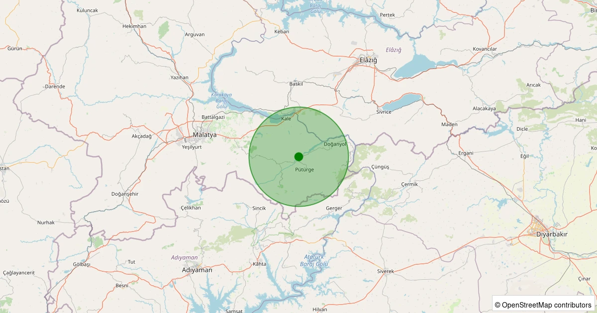 Son 7 gün içinde Pütürge - Aktarla Köyü noktasından 100 km yarıçap içerisinde meydana gelen diğer depremler: