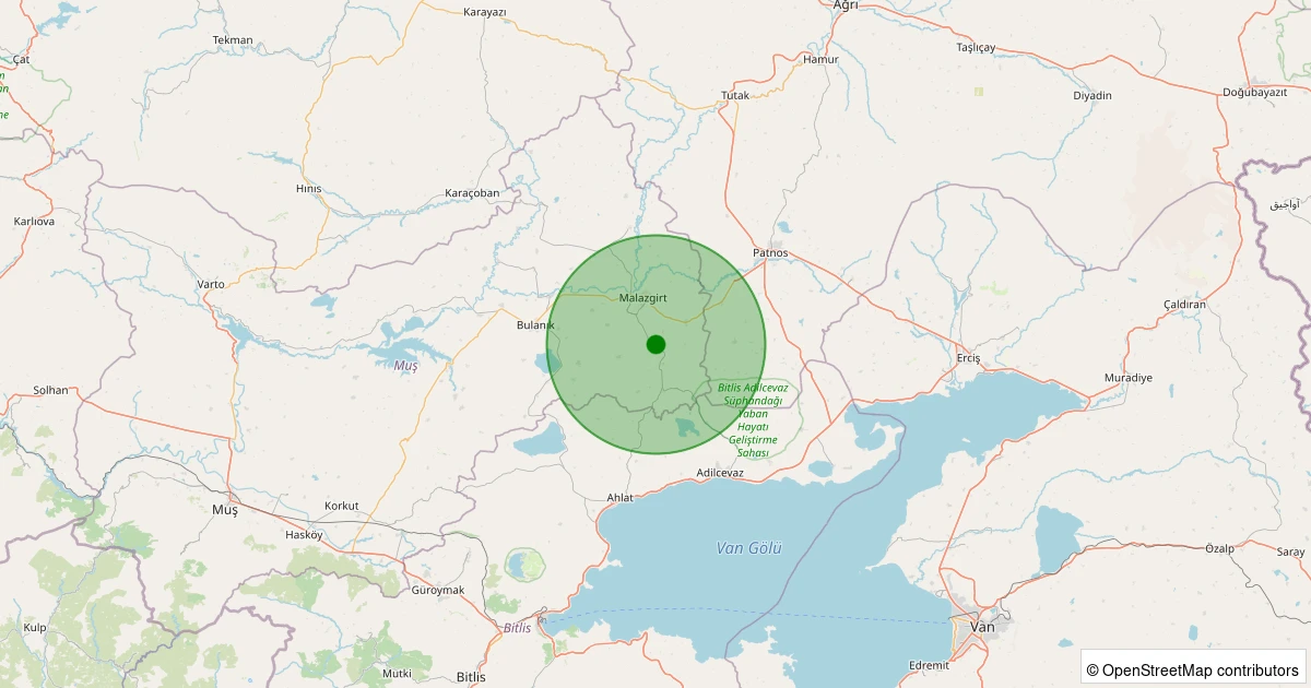 Son 7 gün içinde Malazgirt - Yaramış Köyü noktasından 100 km yarıçap içerisinde meydana gelen diğer depremler: