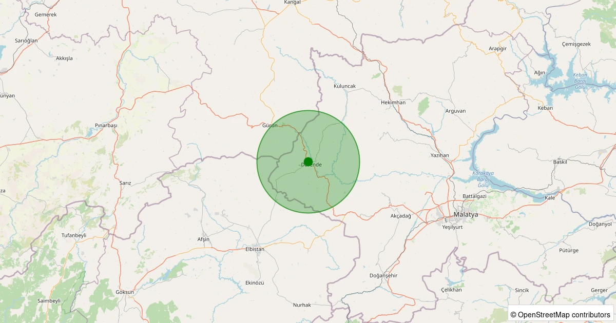 Son 7 gün içinde Darende - Zaviye noktasından 100 km yarıçap içerisinde meydana gelen diğer depremler: