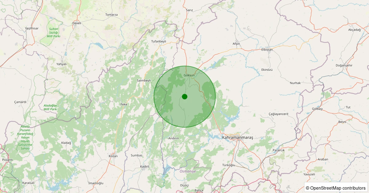 Son 7 gün içinde Andırın - Geben/Çamlıca noktasından 100 km yarıçap içerisinde meydana gelen diğer depremler: