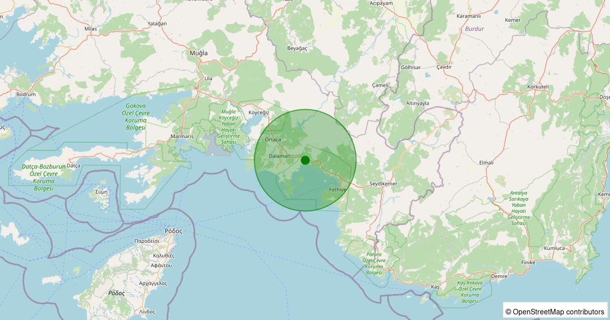 Son 7 gün içinde GOCEK-FETHIYE noktasından 100 km yarıçap içerisinde meydana gelen diğer depremler: