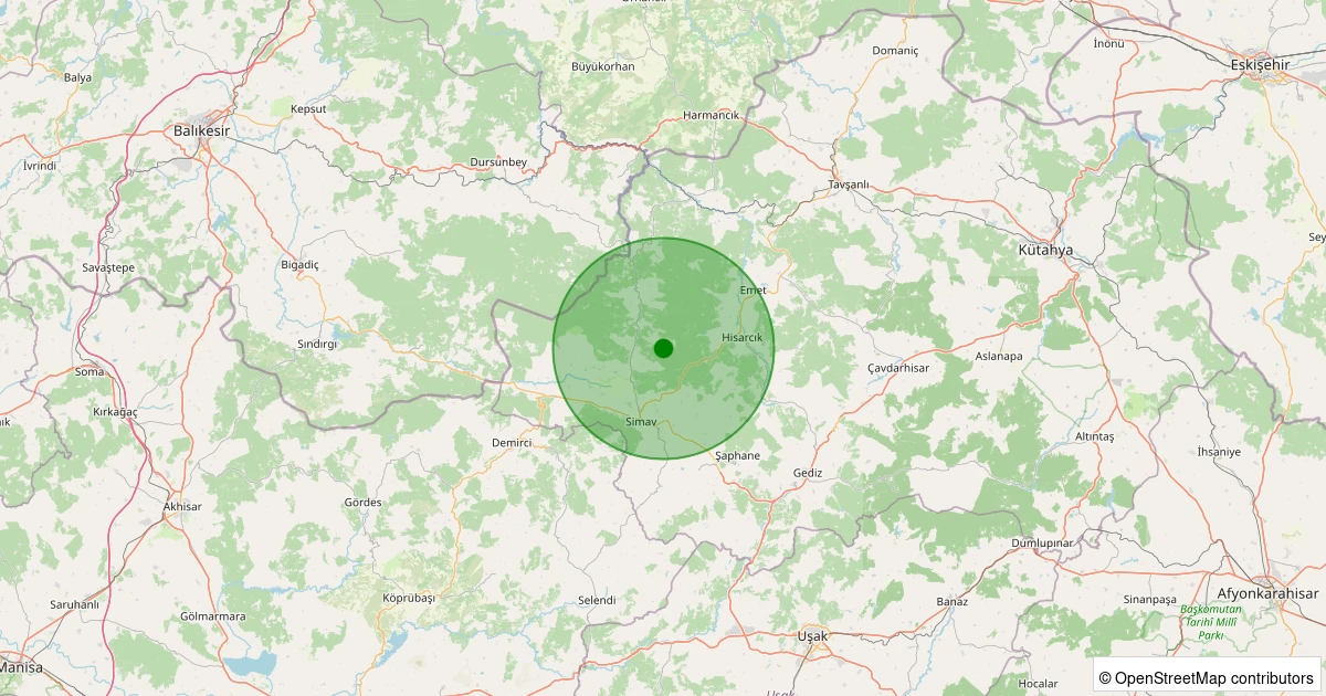 Son 7 gün içinde Simav - Yemişli Köyü noktasından 100 km yarıçap içerisinde meydana gelen diğer depremler: