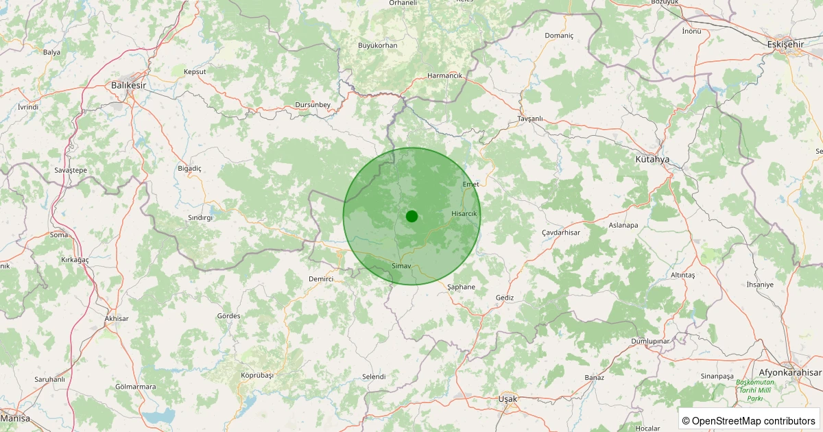 Son 7 gün içinde Simav - Yeşildere Köyü noktasından 100 km yarıçap içerisinde meydana gelen diğer depremler: