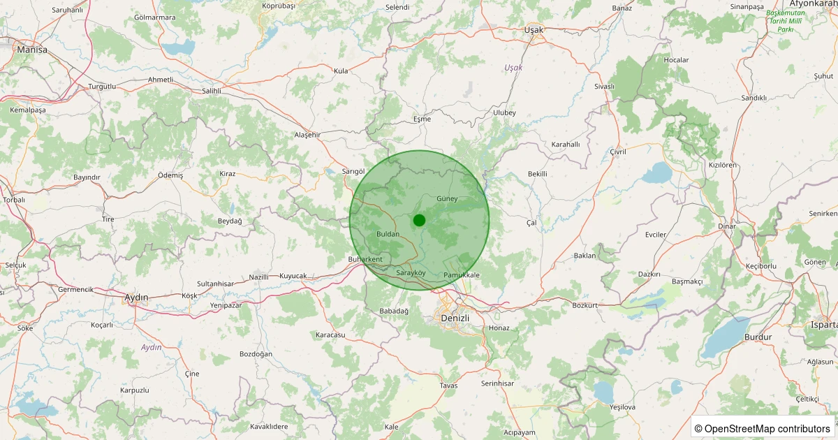 Son 7 gün içinde Buldan - Yenicekent noktasından 100 km yarıçap içerisinde meydana gelen diğer depremler: