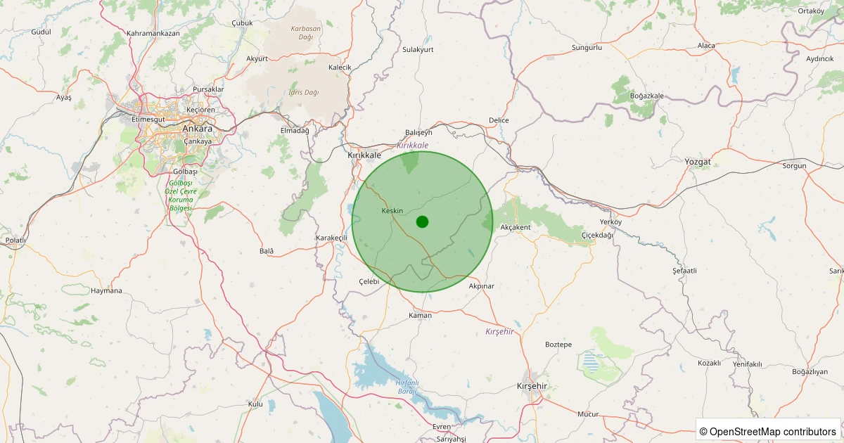 AFAD üzerinden alınan ölçümlere göre Keskin - Polatyurdu Köyü bölgesinde 23.03.2026 20:46 tarihinde gece saatlerinde 2.8 büyüklüğünde bir deprem meydana geldi.