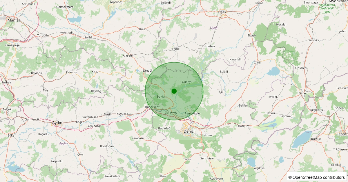 Son 7 gün içinde Buldan - Yenicekent noktasından 100 km yarıçap içerisinde meydana gelen diğer depremler: