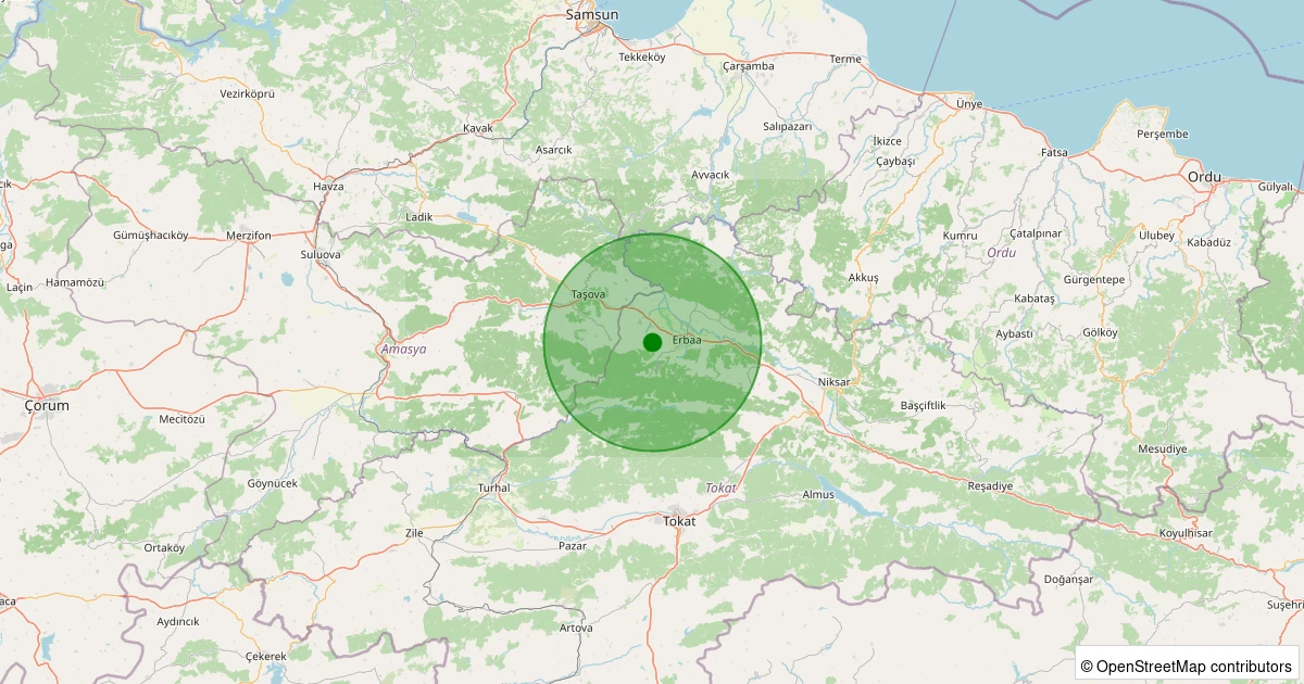 Son 7 gün içinde Erbaa - Değirmenli Köyü noktasından 100 km yarıçap içerisinde meydana gelen diğer depremler: