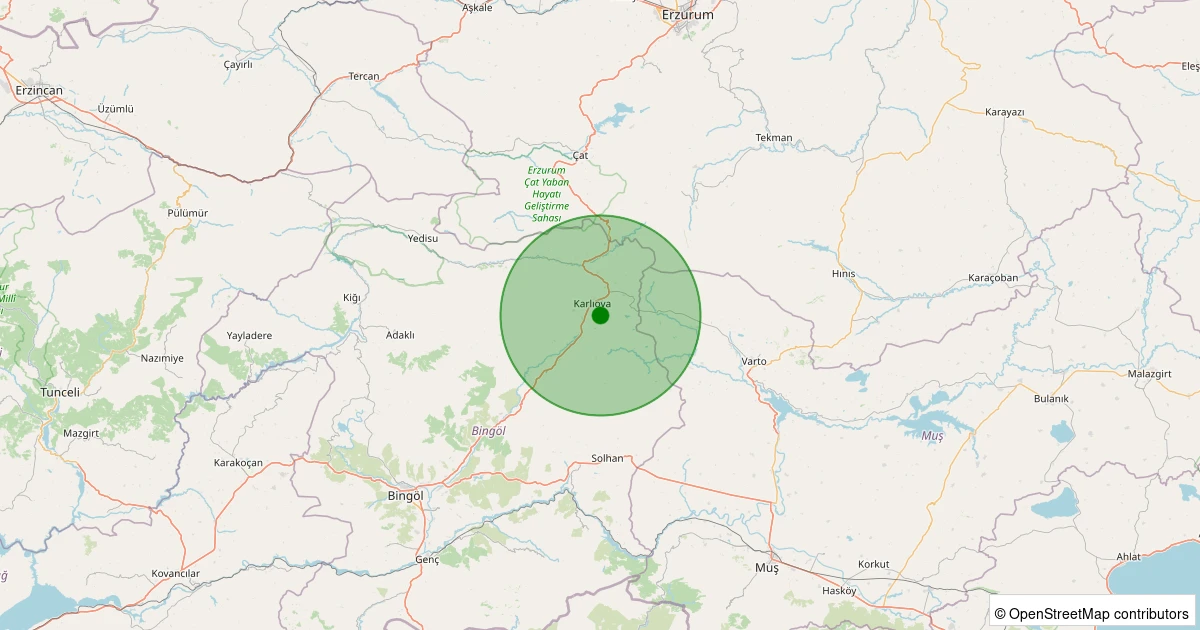 Son 7 gün içinde Karlıova - Serpmekaya Köyü noktasından 100 km yarıçap içerisinde meydana gelen diğer depremler: