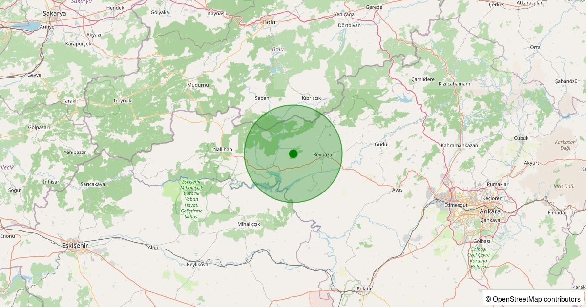 Son 7 gün içinde Beypazarı - Hırkatepe noktasından 100 km yarıçap içerisinde meydana gelen diğer depremler: