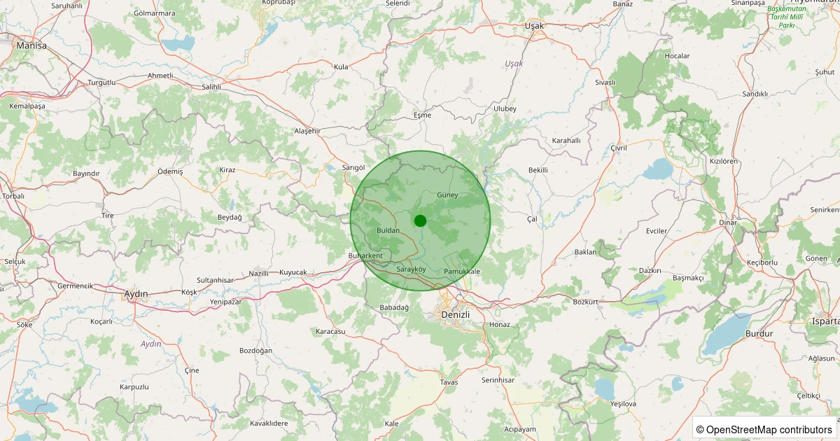 Son 7 gün içinde Buldan - Yenicekent noktasından 100 km yarıçap içerisinde meydana gelen diğer depremler:
