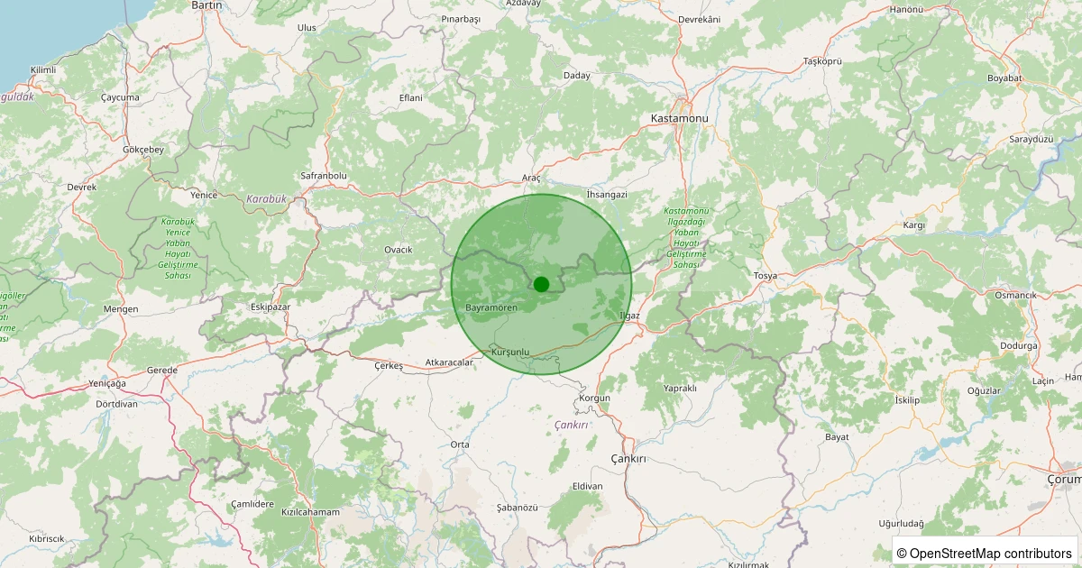 Son 7 gün içinde Araç - Köklüdere Köyü noktasından 100 km yarıçap içerisinde meydana gelen diğer depremler: