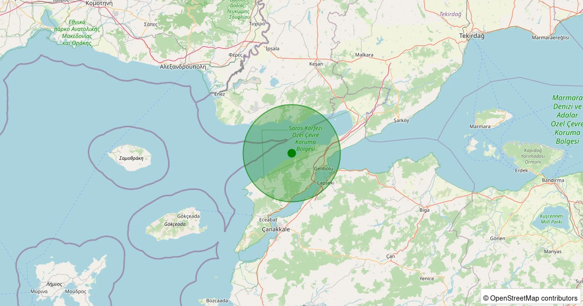 Son 7 gün içinde Ege Denizi - Saros Körfezi - [06.56 km] Gelibolu (Çanakkale) noktasından 100 km yarıçap içerisinde meydana gelen diğer depremler:
