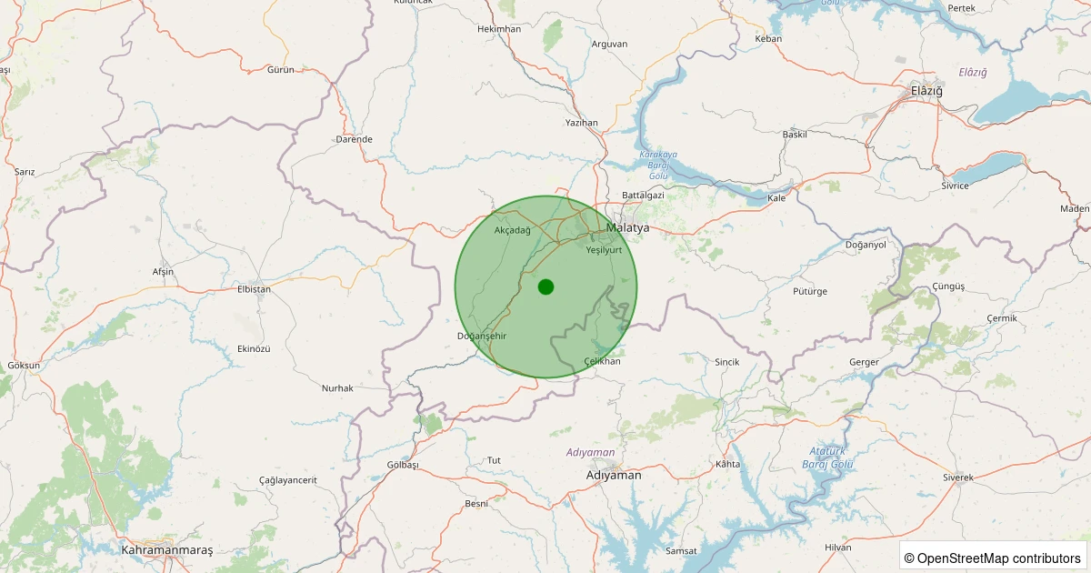 Son bir hafta içerisinde Malatya şehri Yeşilyurt noktasından 100 km yarıçap içerisinde toplamda 205 deprem kaydedilmiştir. Bu depremlerden en büyüğü 2.9 büyüklüğünde ve en sığ odaklısı 0.00 kilometre derinlikte gerçekleşmiştir.