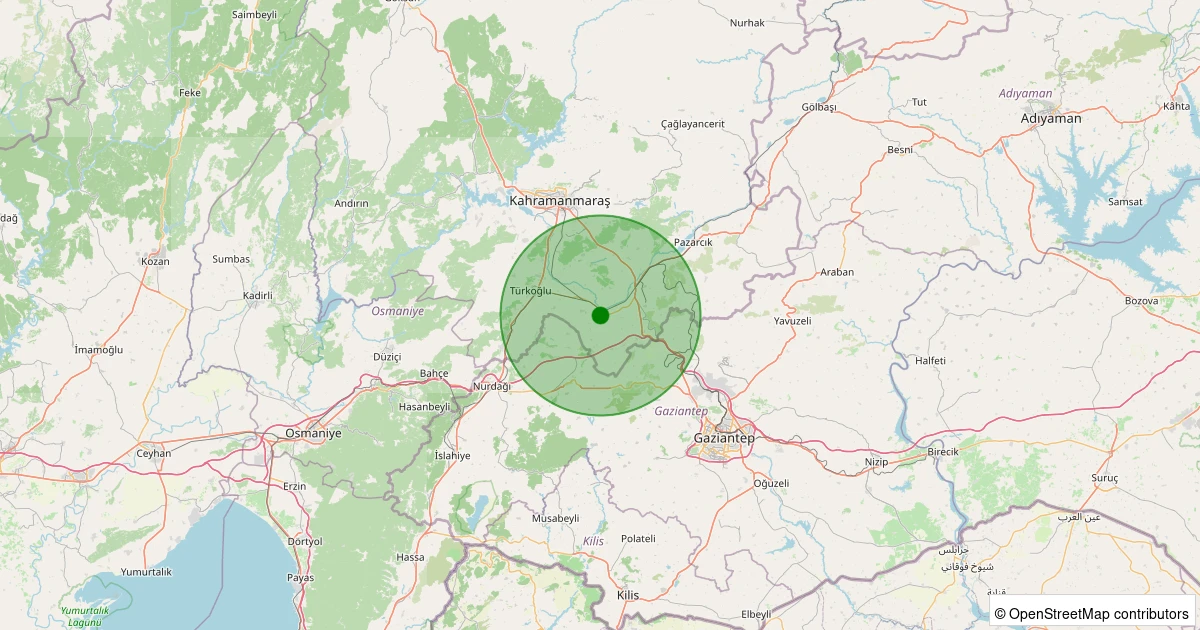 Son 7 gün içinde Kahramanmaraş noktasından 100 km yarıçap içerisinde meydana gelen diğer depremler: