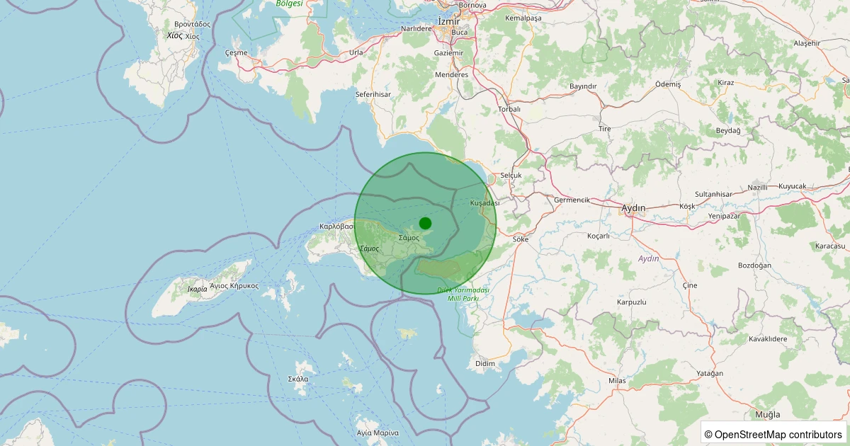 Son 7 gün içinde KUSADASI noktasından 100 km yarıçap içerisinde meydana gelen diğer depremler: