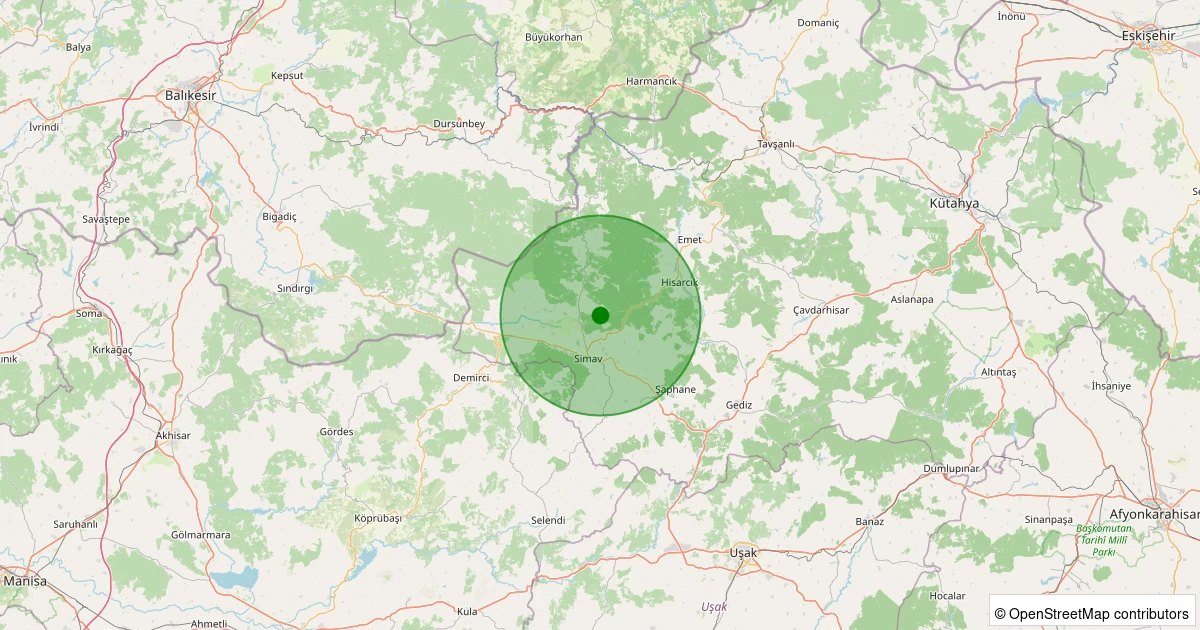 Son 7 gün içinde Simav - Naşa/Fatih noktasından 100 km yarıçap içerisinde meydana gelen diğer depremler: