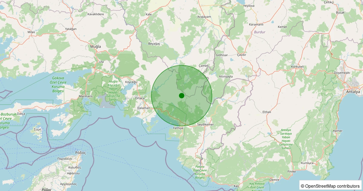 Son 7 gün içinde Dalaman noktasından 100 km yarıçap içerisinde meydana gelen diğer depremler: