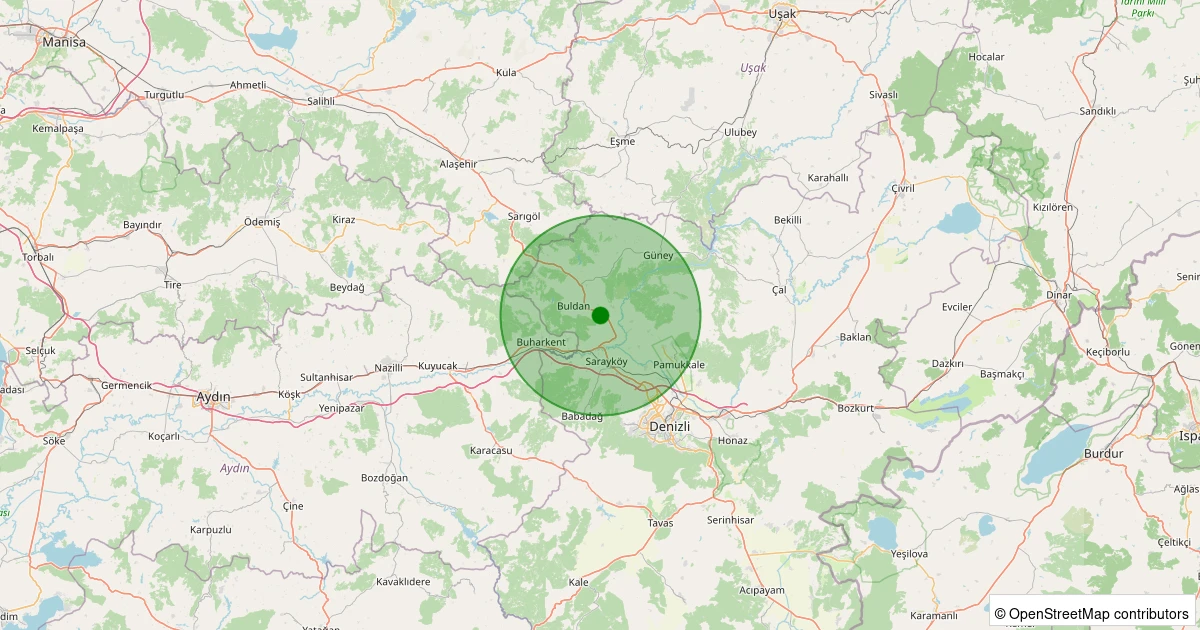 Son 7 gün içinde Buldan - Bölmekaya noktasından 100 km yarıçap içerisinde meydana gelen diğer depremler: