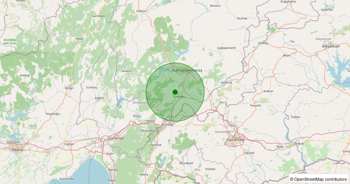 Son 7 gün içinde Türkoğlu - Aydınkavak noktasından 100 km yarıçap içerisinde meydana gelen diğer depremler: