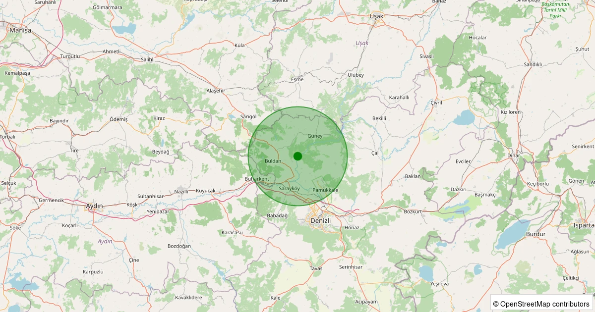 Son 7 gün içinde Buldan - Yenicekent noktasından 100 km yarıçap içerisinde meydana gelen diğer depremler: