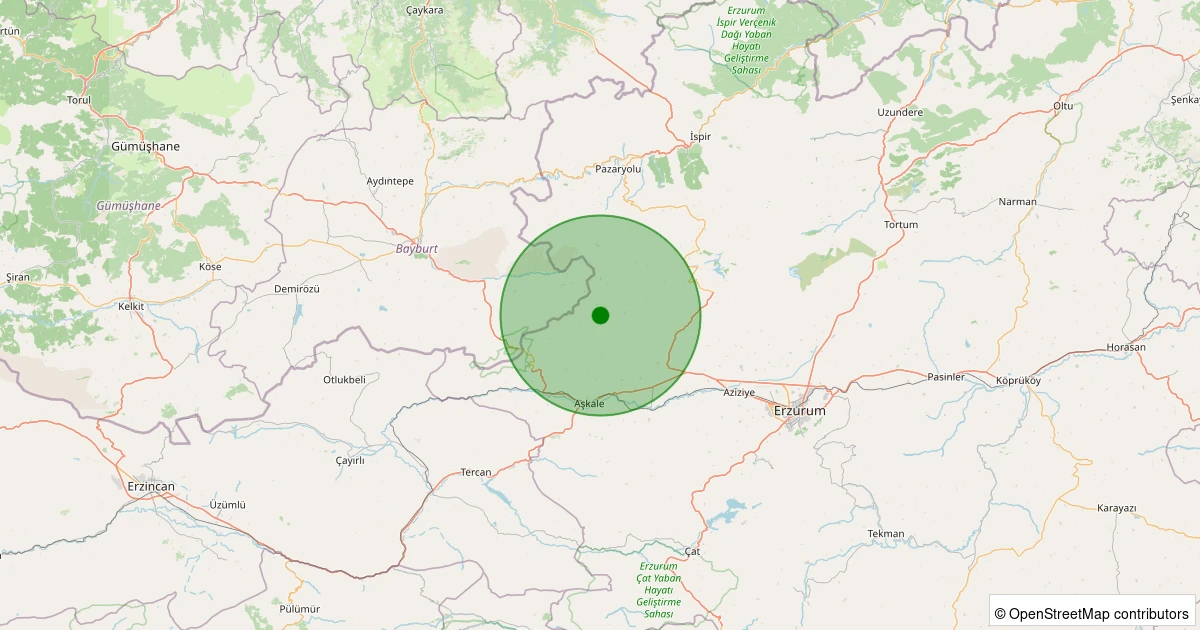 Son 7 gün içinde Aziziye - Aşağıcanören noktasından 100 km yarıçap içerisinde meydana gelen diğer depremler: