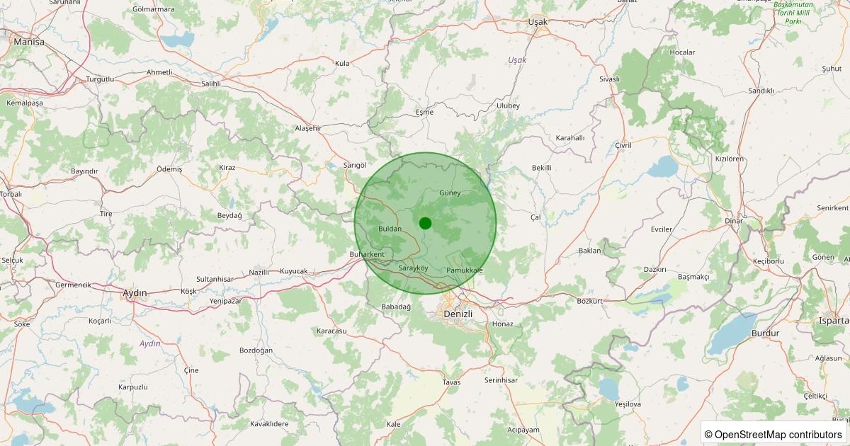 Son 7 gün içinde Buldan - Yenicekent noktasından 100 km yarıçap içerisinde meydana gelen diğer depremler: