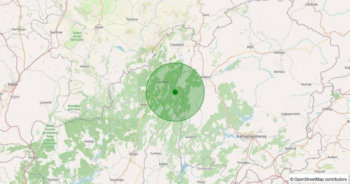 Son 7 gün içinde Saimbeyli - Aksaağaç noktasından 100 km yarıçap içerisinde meydana gelen diğer depremler: