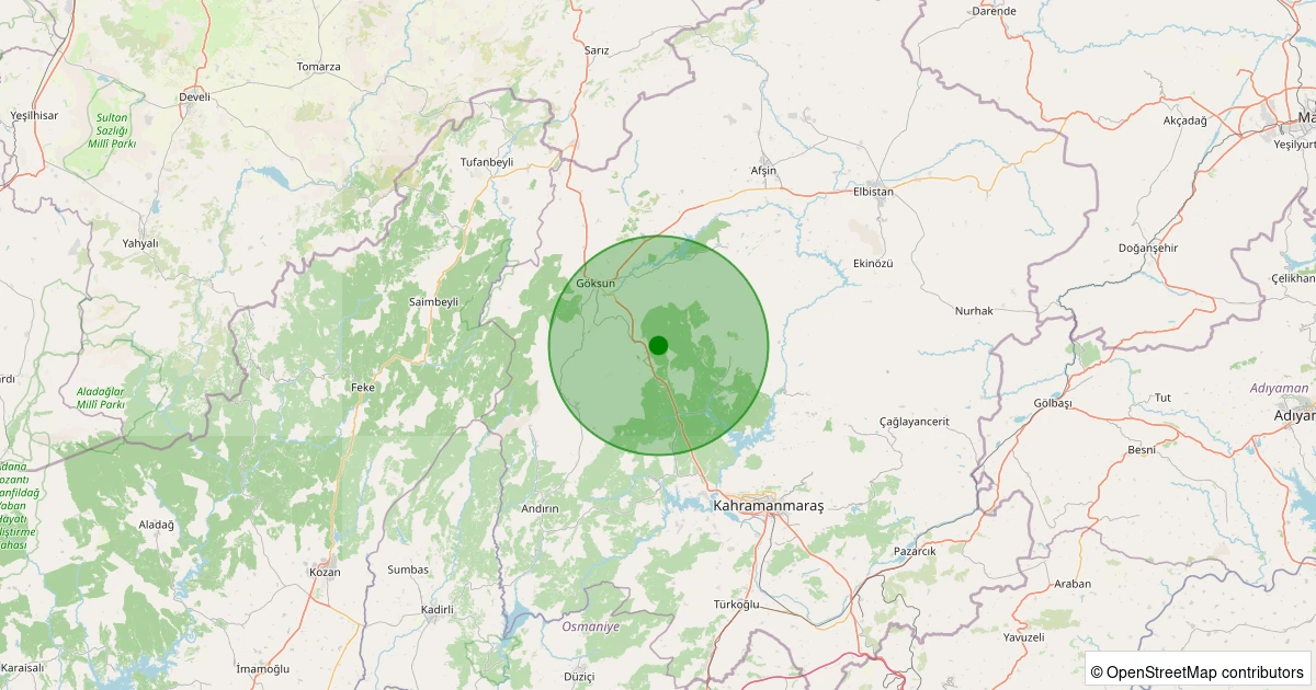 Son 7 gün içinde Onikişubat - Döngel noktasından 100 km yarıçap içerisinde meydana gelen diğer depremler: