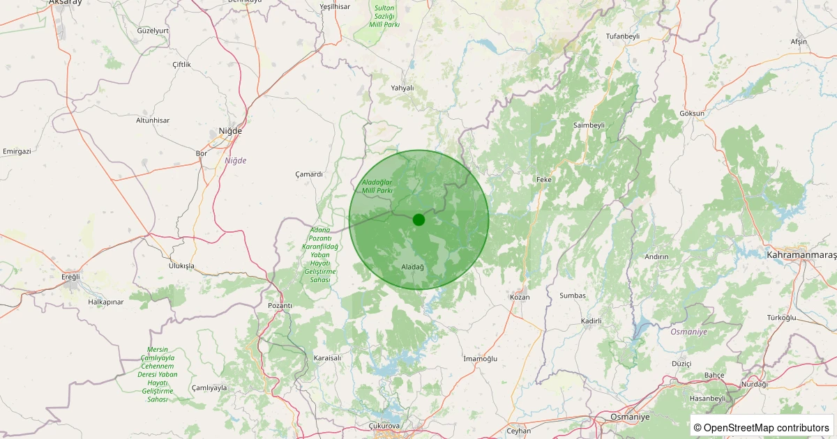 Son 7 gün içinde Aladağ - Küp noktasından 100 km yarıçap içerisinde meydana gelen diğer depremler: