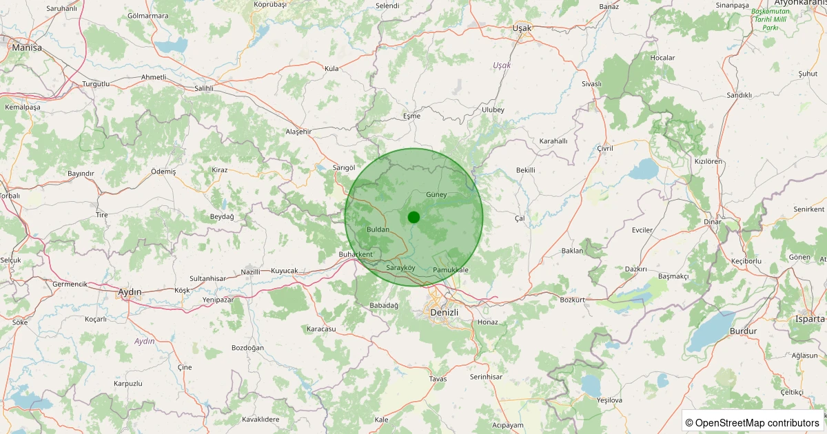 Son 7 gün içinde Buldan - Yenicekent noktasından 100 km yarıçap içerisinde meydana gelen diğer depremler: