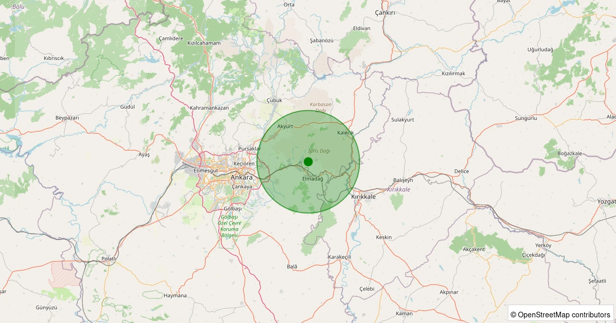 Son 7 gün içinde Elmadağ - Hasanoğlan-Havuzbaşı noktasından 100 km yarıçap içerisinde meydana gelen diğer depremler: