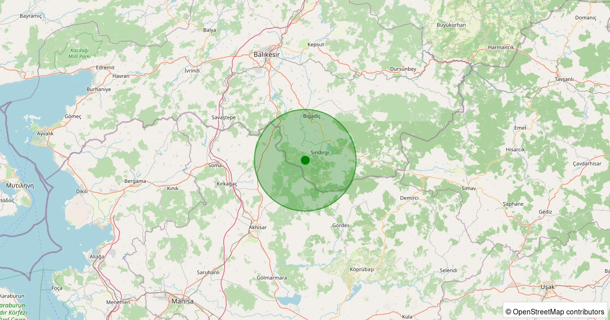 Son 7 gün içinde Sındırgı - Kertil noktasından 100 km yarıçap içerisinde meydana gelen diğer depremler: