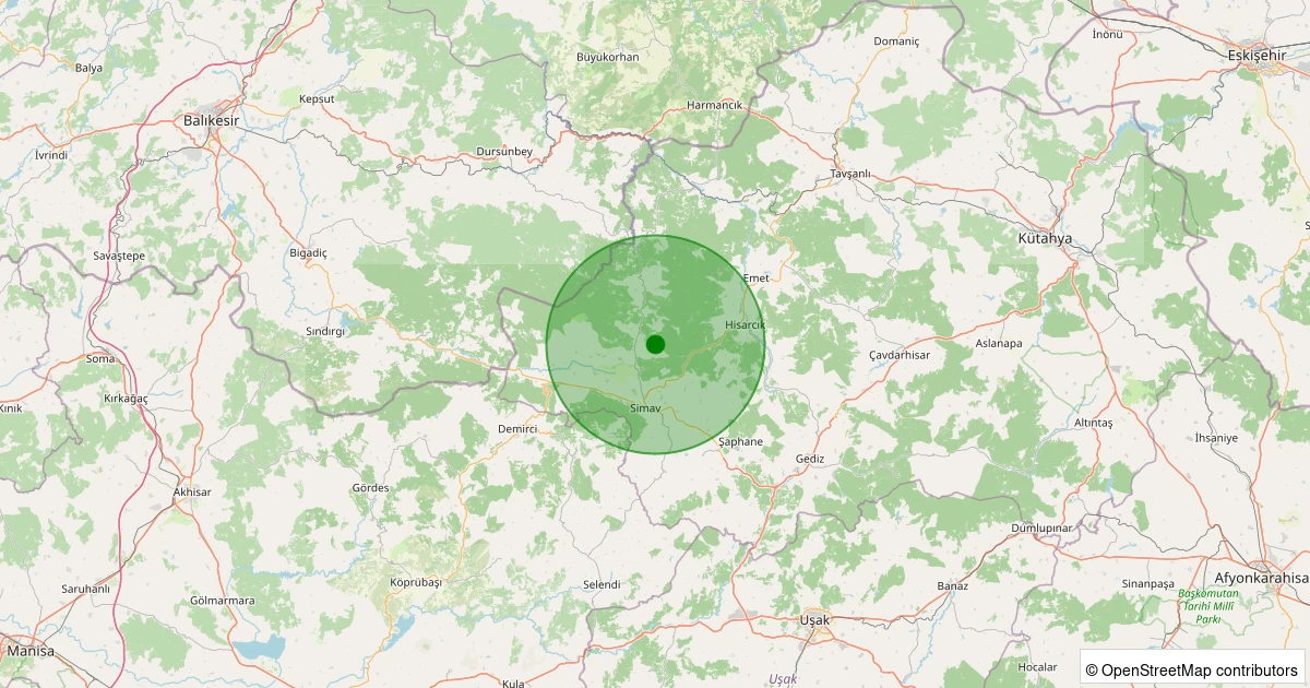 Son 7 gün içinde Simav - Yemişli Köyü noktasından 100 km yarıçap içerisinde meydana gelen diğer depremler: