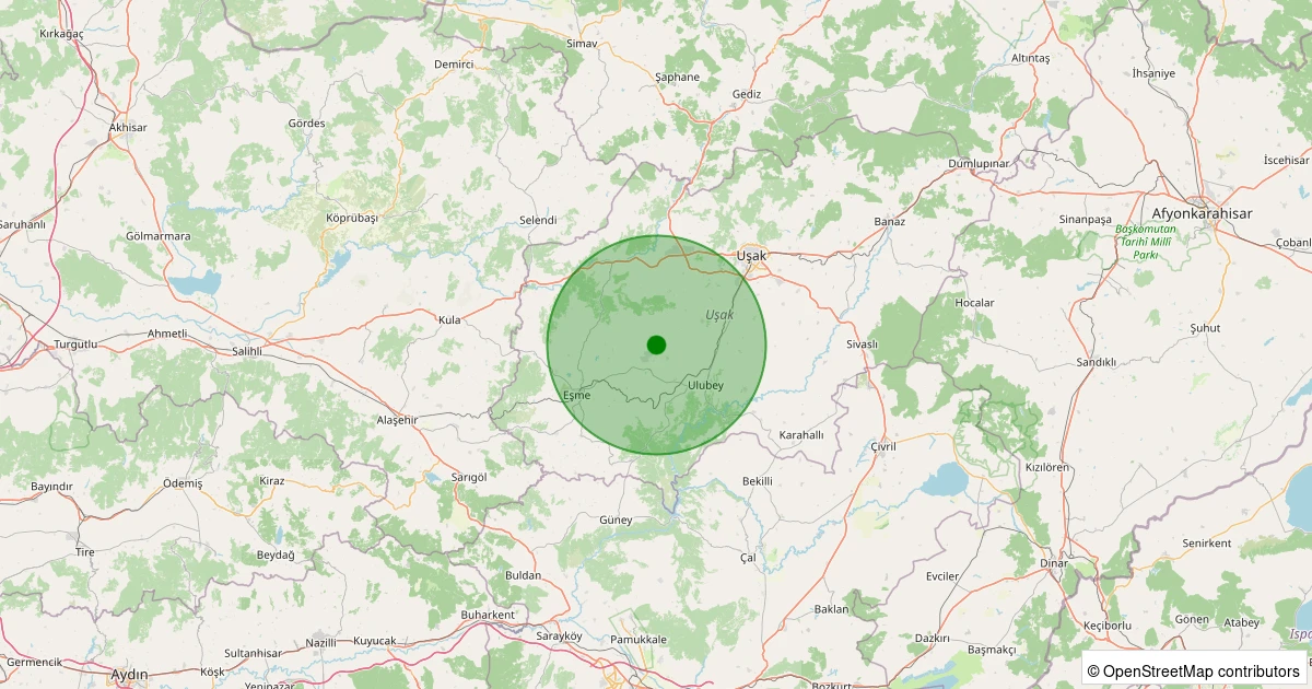 Son 7 gün içinde Ulubey - Kışla Köyü noktasından 100 km yarıçap içerisinde meydana gelen diğer depremler: