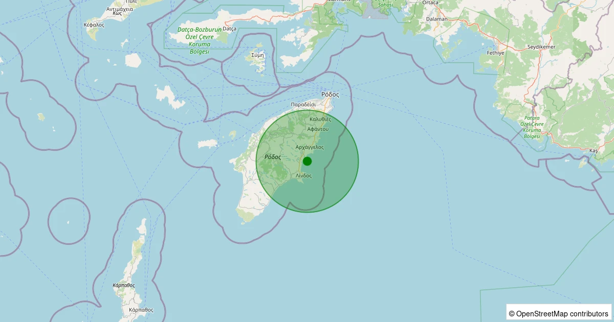 Son 7 gün içinde RODOS noktasından 100 km yarıçap içerisinde meydana gelen diğer depremler: