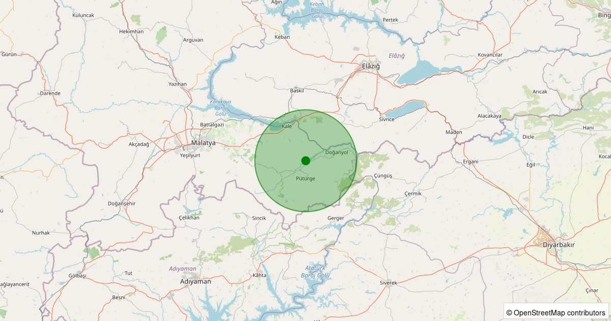 Son 7 gün içinde Pütürge - Bölükkaya Köyü noktasından 100 km yarıçap içerisinde meydana gelen diğer depremler: