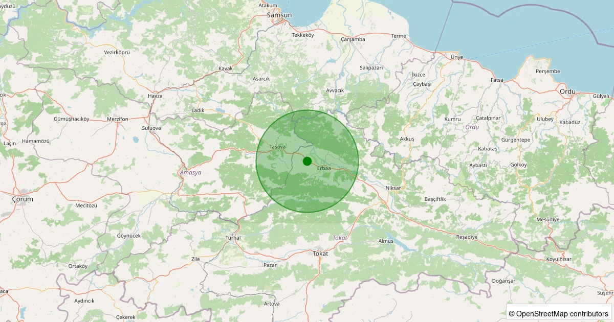 Son 7 gün içinde Erbaa - Değirmenli Köyü noktasından 100 km yarıçap içerisinde meydana gelen diğer depremler: