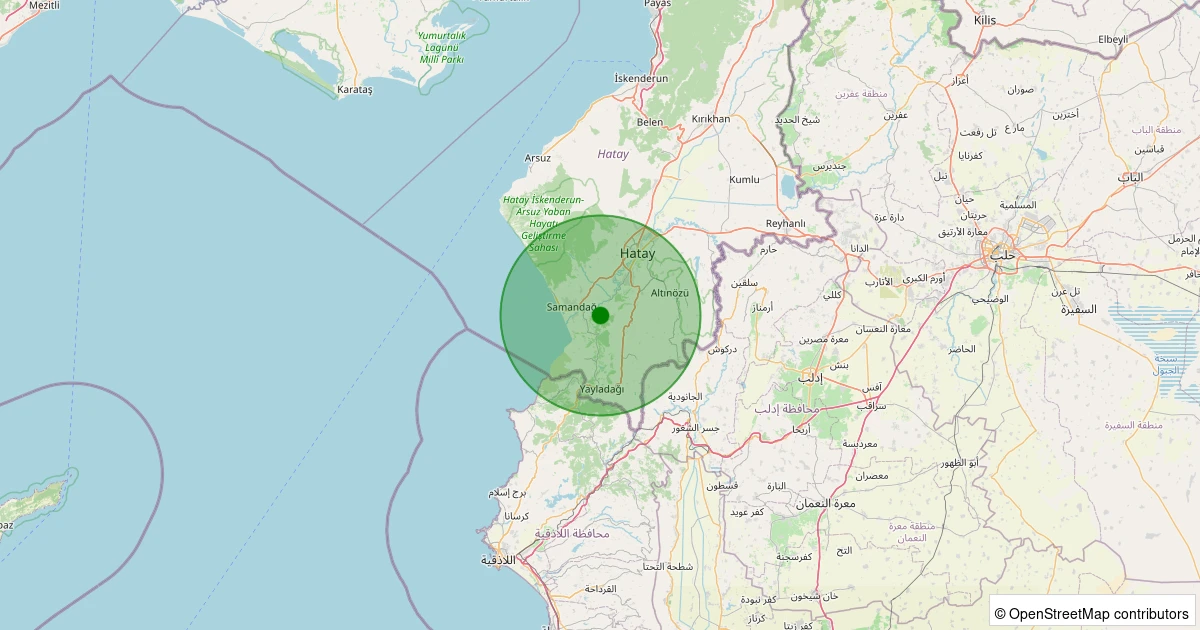 Son 7 gün içinde Yayladağı - Çaksına Köyü noktasından 100 km yarıçap içerisinde meydana gelen diğer depremler: