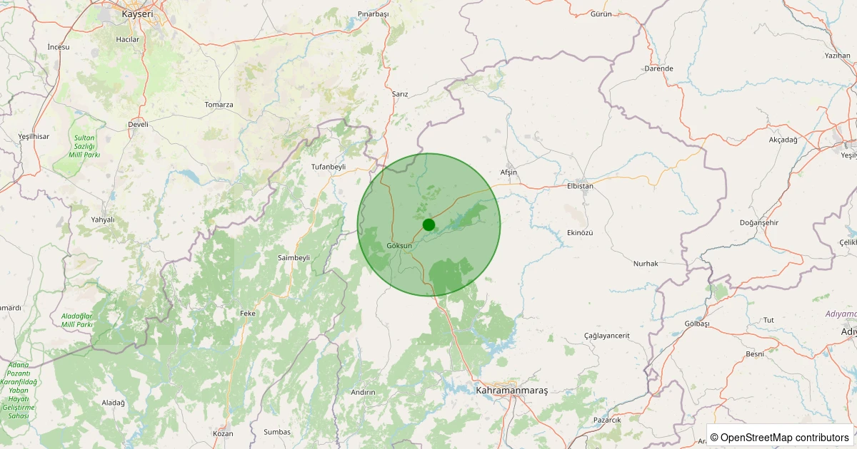 Son 7 gün içinde Göksun - Kanlıkavak noktasından 100 km yarıçap içerisinde meydana gelen diğer depremler: