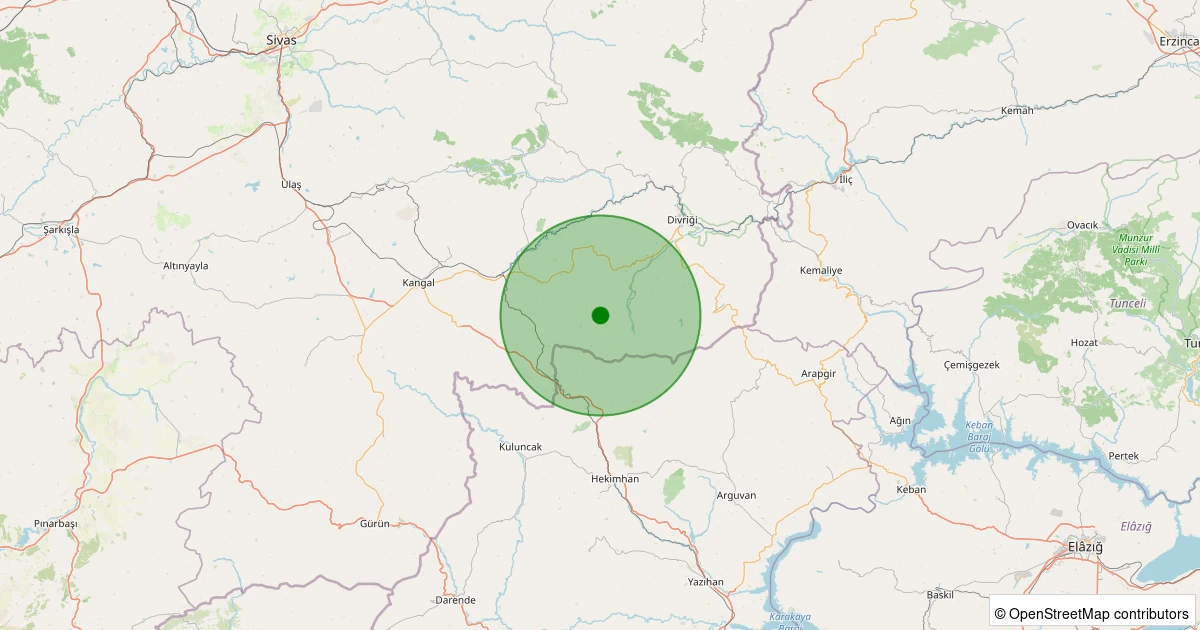 Son 7 gün içinde Kangal - Ceviz Köyü noktasından 100 km yarıçap içerisinde meydana gelen diğer depremler:
