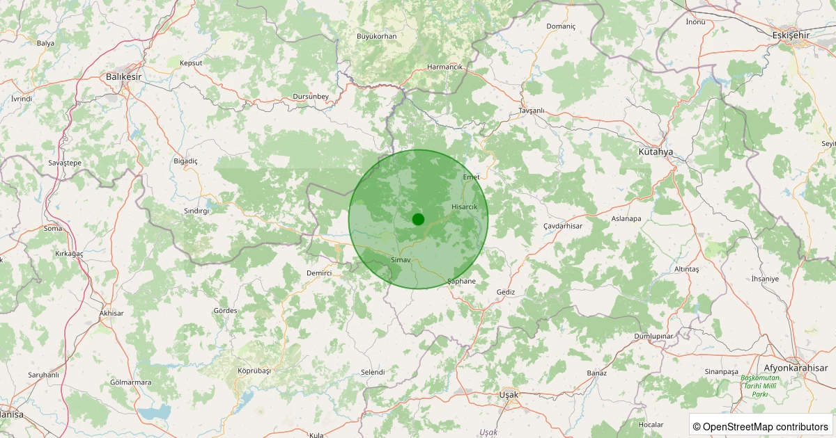 Son 7 gün içinde Simav - Yemişli Köyü noktasından 100 km yarıçap içerisinde meydana gelen diğer depremler: