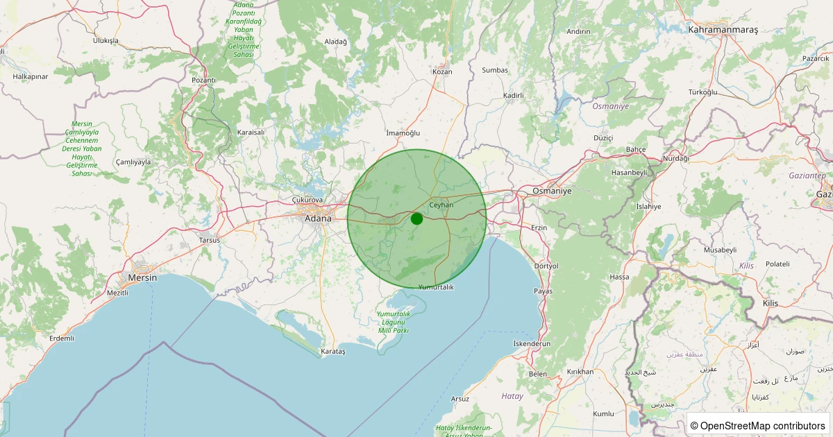 Son 7 gün içinde Ceyhan - Çokçapınar noktasından 100 km yarıçap içerisinde meydana gelen diğer depremler: