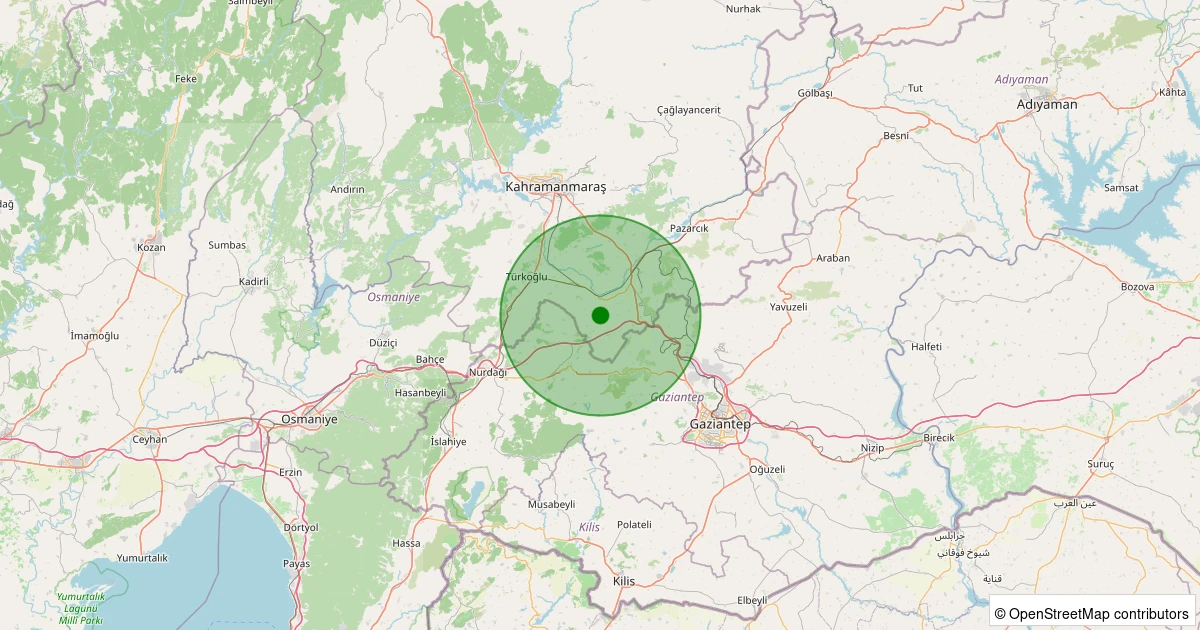 Son 7 gün içinde Pazarcık - Ördekdede noktasından 100 km yarıçap içerisinde meydana gelen diğer depremler:
