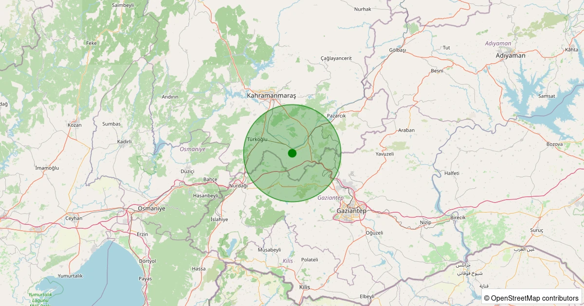 Son 7 gün içinde Pazarcık noktasından 100 km yarıçap içerisinde meydana gelen diğer depremler: